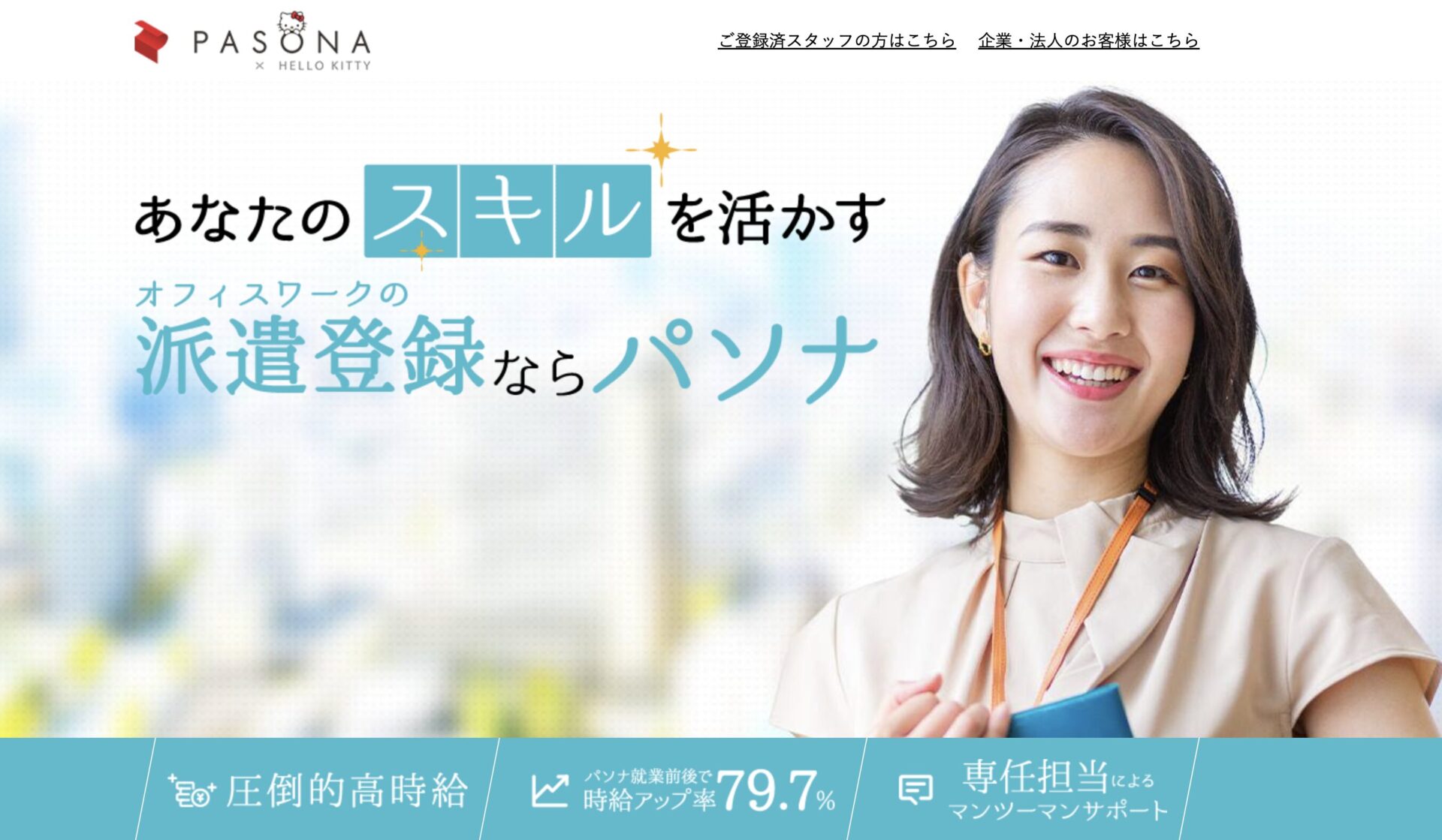 - 時給アップ率79.7%(パソナ就業前後比較数値)